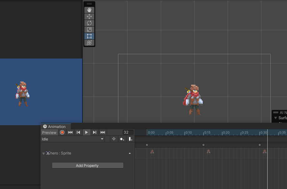 -hero 오브젝트 선택 후 create 애니메이션.