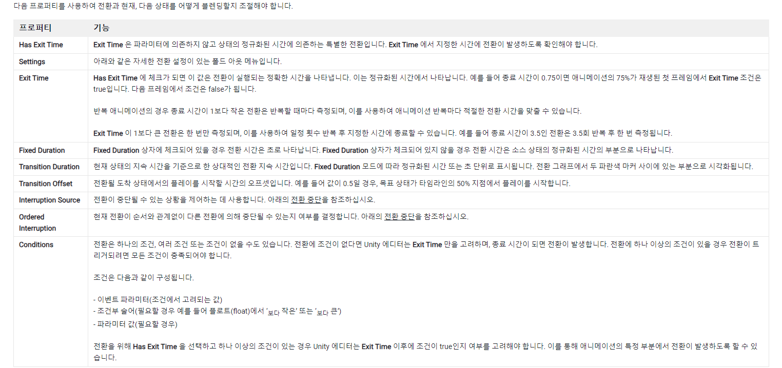 https://docs.unity3d.com/kr/2021.3/Manual/class-Transition.html